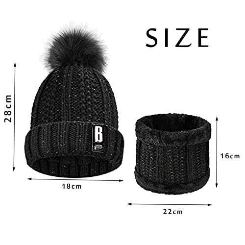 NININI 2 Pezzi Cappello e Sciarpa,Invernale Berretti e Sciarpe Donna,Winter Warm Knitted Berretto,per Escursioni All'Aperto e in Inverno, Ciclismo, Sci, Slittino, Snowboard (Nero)