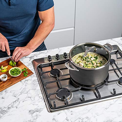 Cucina usando poco o zero olio. Il set è compatibile con tutti i tipi di piani cottura, inclusi quelli a induzione.