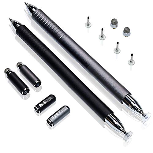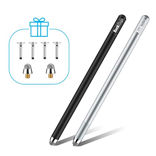 Rock Ninja 2 Pezzi 3 in 1 Pennino Capacitivo/Penna Capacitiva Universale di Precisione Disco Bundle con 2 Punte in Fibra Sostitutive e 4 Punte a Disco Sostitutive per Tutti Gli Touchscreen.