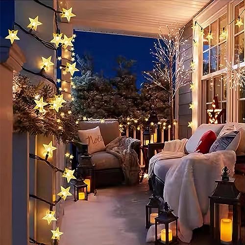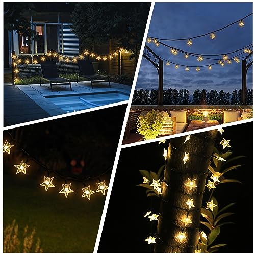 Ninonly Catena Luminosa Stella, 14m 120 LED Catena Luminosa Solare Esterno, Stella Luci Led Impermeabili, Stelle Catene Luminose per Feste Natale Matrimoni Giardino Cortile Decorazione