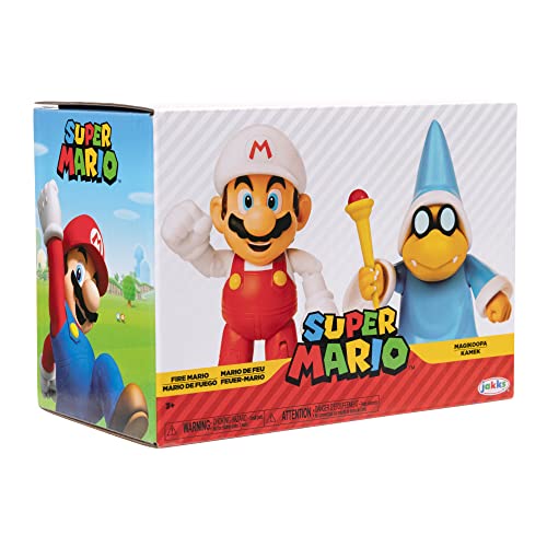 Nintendo Super Mario - Action figure di Fire Mario e Magikoopa alte 10 cm, dotate di multipli punti di articolazione ed estremamente dettagliate. Per bambini e collezionisti
