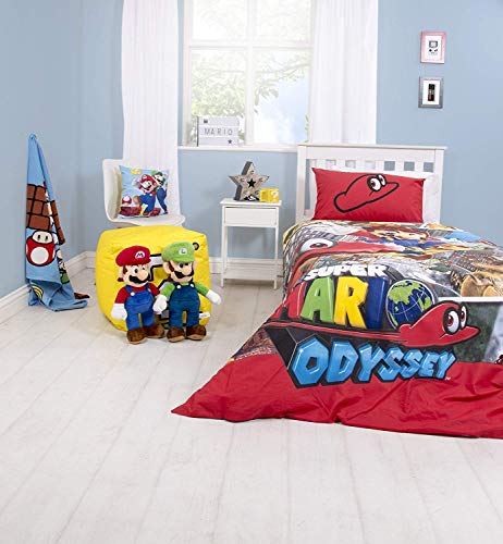 Nintendo Super Mario Odyssey Copripiumino Singolo, Reversibile, con Federa