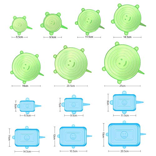 Niohouse Coperchio in silicone alimentare, elastici in silicone, 13 coperchi rettangolari e rotondi regolabili diverse misure per alimenti, riutilizzabili per tazze, frigorifero, barattoli