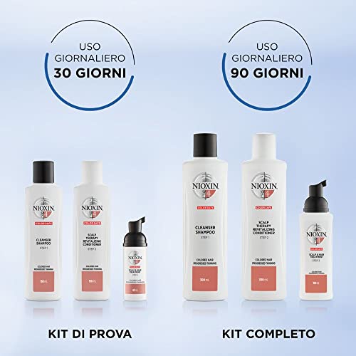 Nioxin Kit 1/2/3/4/5 e 6 | Trattamento per Infoltimento dei Capelli | Riduce la Caduta dei Capelli | Sistema 4 | per Capelli Colourati Assottigliati | 40 - 150 ml