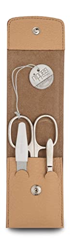 Nippes Solingen, set per manicure, 3 pezzi, in vera pelle bovina con bottone automatico, Nippes Premium Line, beige