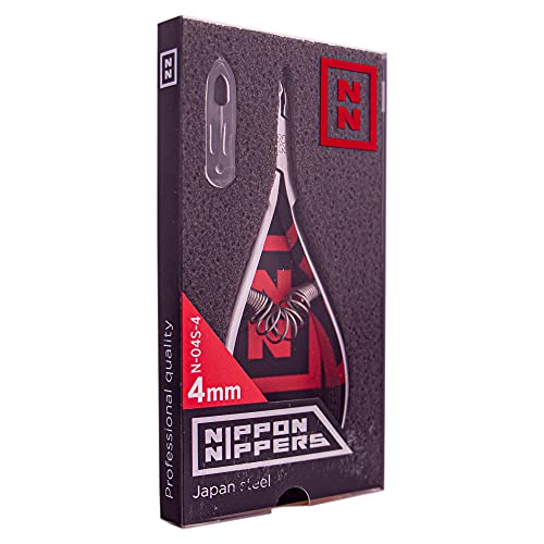 Nippon Nippers, Pinze professionali per cuticole, 4 mm, in lega giapponese, affilatura manuale, manicure pedicure, 113 mm, molle a spirale, N-04S-4