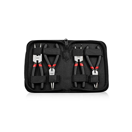 Nirox Set di 4 Pinze per anelli elastici 125mm - Pinze Per Anelli Di Sicurezza - impugnatura antiscivolo, estremità nichelata da 1,2mm - Pinza seeger con custodia