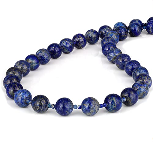 NirvanaIN (8,5 mm collana di perle con gemme di lapislazzuli lisce rotonde da donna con catena in argento 925 (45 cm)