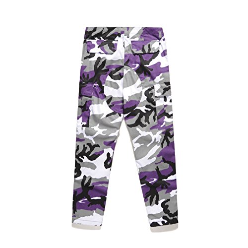 NiSeng Donna Di Cotone Stampa Mimetica Tempo Libero Sciolto Jeans Moda Pantaloni 1#Viola L