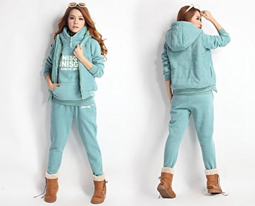 NiSeng Donna Felpa Tute Felpa Con Cappuccio Cappotto Pullover Tuta Training Ispessisce Sportivo 3 Pezzi Hoodie Felpa +Pantaloni+Gilet Giacca Verde Chiaro L