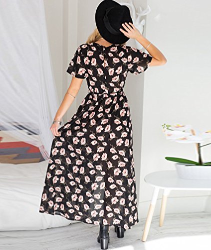 NiSeng Donne Manica Corta Vestito V-Collo Stampe Floreali Maxi Vestito Slits Vestito Spiaggia HuaSe M