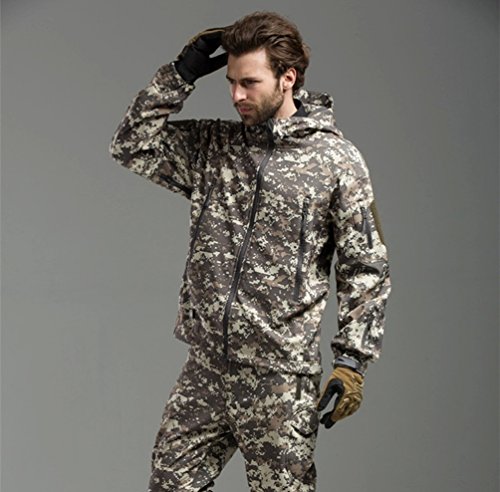 NiSeng Uomo Softshell Cappuccio Tattico Giacca Camouflage Funzione Resistente all'Acqua Giacca Trekking Giacca Camuffamento 1 2XL