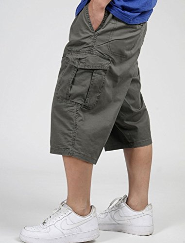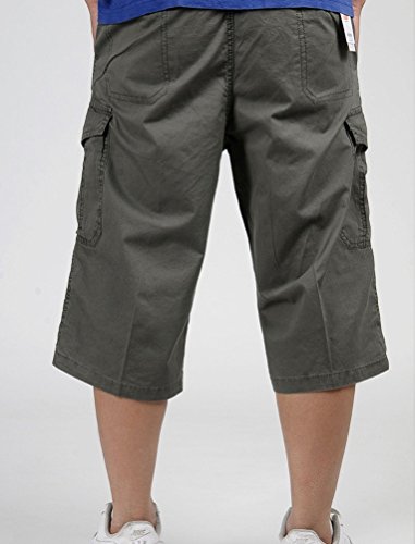 NiSeng Traspirante Pantaloncini da Uomo 3/4 Bermuda Cargo Shorts con Elastico in Vita Verde Militare Asia 5XL/EU 56