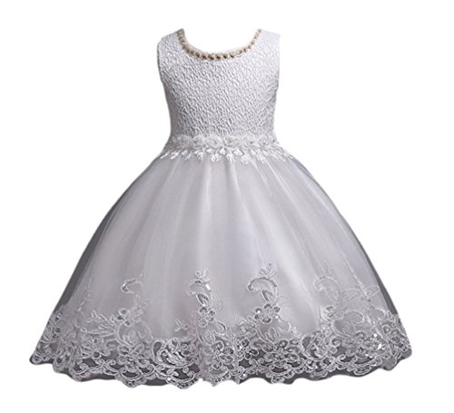 NiSeng Vestito per Bambini Fiore Principessa Vestito Pizzo Abito da Sposa Partito Comunione Compleanno Festivo Paillettes Vestito Bianca 110