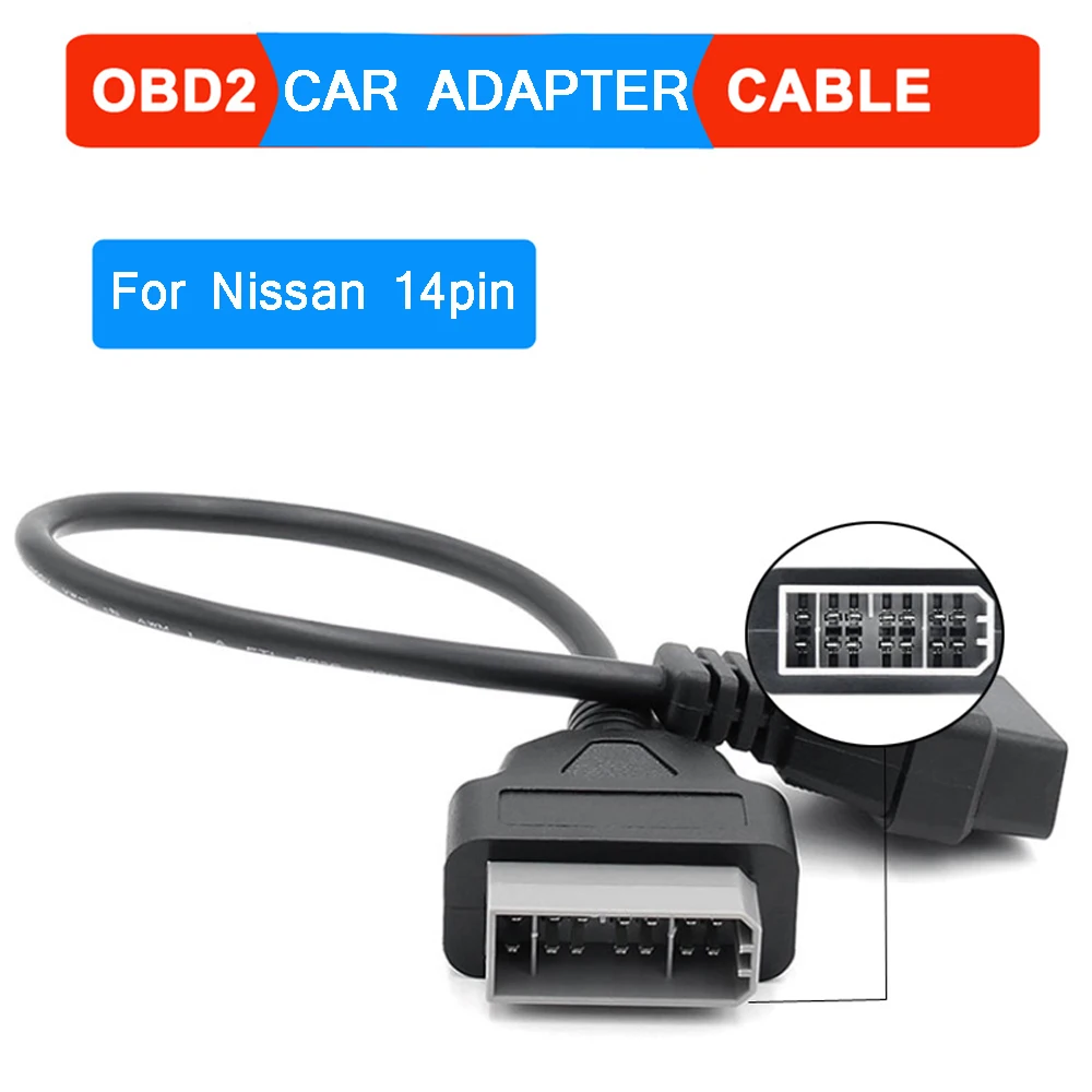 For Nissan 14pin to OBD2 16Pin Connector Adapter 14 pin to OBD II 16 Pin Data Link Cable
