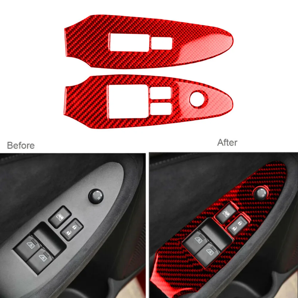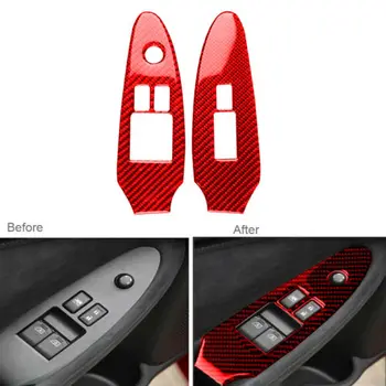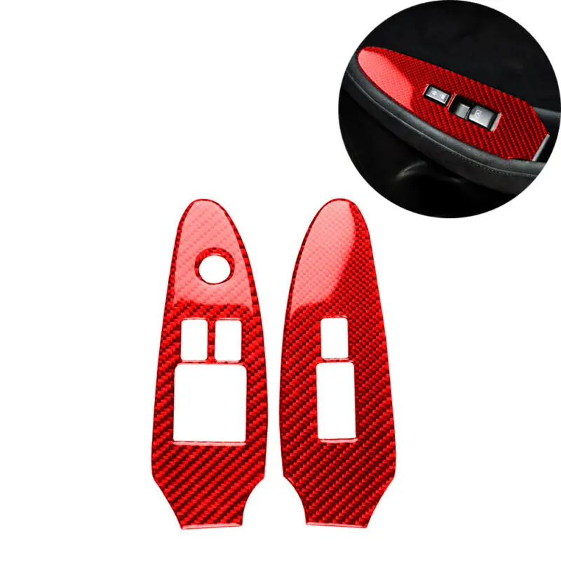 2Pcs Red For Nissan 370Z 2009-2020 Carbon Fiber Window Lift Switch Panel Cover Stickers