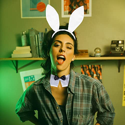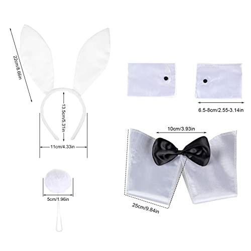NITAIUN Costume da Coniglietto Bianco Accessorio da Coniglietto Costume da Coniglietto di Pasqua Kit Orecchio di Coniglio Fascia Papillon Polsini Coda per Adulti Natale Pasqua (Bianco)