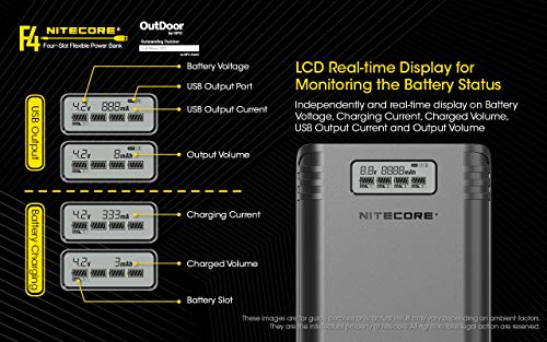 Nitecore, Caricabatterie F4 versatile con 4 ingressi, per batterie IMR/agli ioni di litio e con funzione powerbank per cellulare