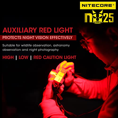 NITECORE NU25 Nero 360 Lumen Lampada frontale leggera 3 sorgenti luminose Faro anteriore ricaricabile USB con etichetta NITECORE