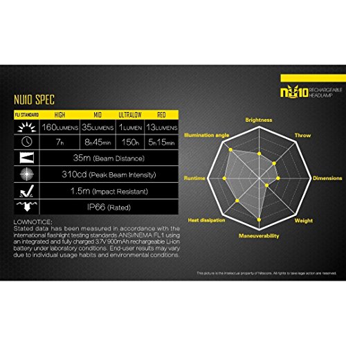 Nitecore nu10j Lampada Frontale, Giallo, Uni