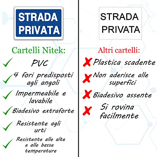 Nitek cartello strada privata in PVC 30cm x 20cm- Cartello autoadesivo| Sign, Schild | Impermeabili Lavabili, Vicoli, percorsi privati