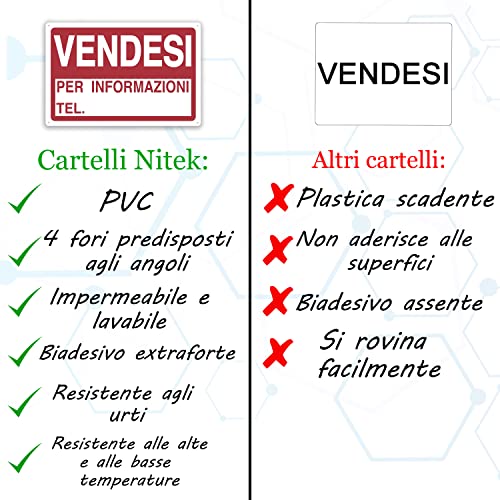 Nitek Cartello vendesi in PVC 30cm x 20cm- Cartello autoadesivo| Sign, Schild | Impermeabili Lavabili, Locale commerciale, pub, case