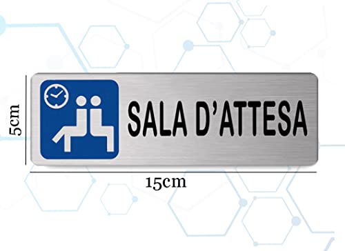 Nitek Targa sala d'attesa in alluminio satinato 150mm x 50mm - Targhette Autoadesive| Stickers, Klebeetikett | Impermeabili Lavabili, clinica, ufficio