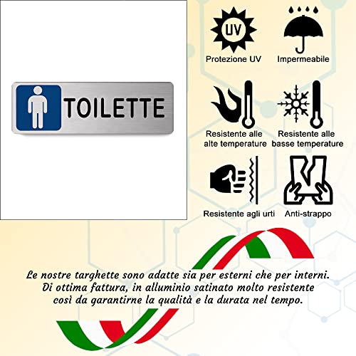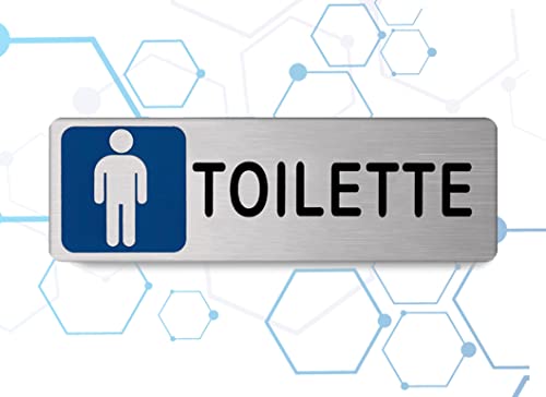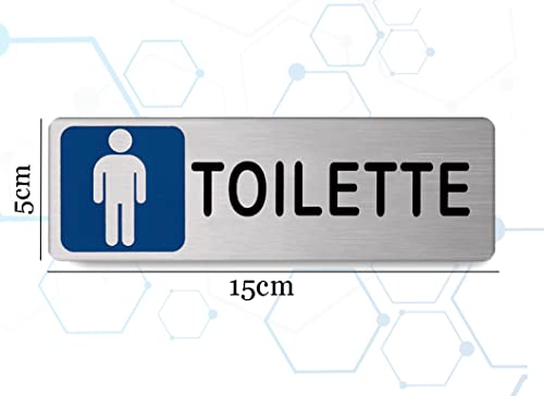 ✅ CARATTERISTICHE: Targhetta adesiva “Toilette” per uomo, in alluminio che si presenta nel seguente modo: su sfondo argento satinato troviamo, nella parte destra, il seguente testo nero: “TOILETTE” mentre nella parte sinistra, troviamo l'icona di un uomo. Dimensioni 150mm x 50mm x 1mm.