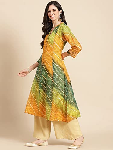 Nitimatta Kurtas per donne indiane designer etnico dritto Anarkali A-Line Kurti tunica top - verde - S
