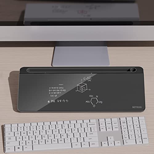 NITRAM Lavagna da scrivania o ufficio in vetro, cassetto portaoggetti e scomparto per accessori. Dim.:40x18x6 con cancellino e 2 pennarelli
