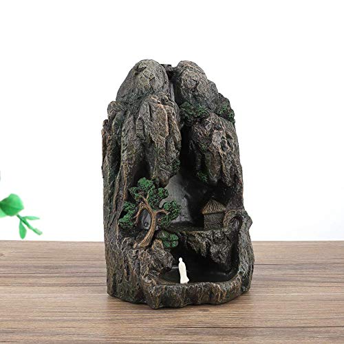 NITRIP Fontana Portaincenso Rilassante, Waterfall Mountain Tower Backflow Bruciatori di incenso in Resina Porta in Legno di Sandalo con 10 Coni