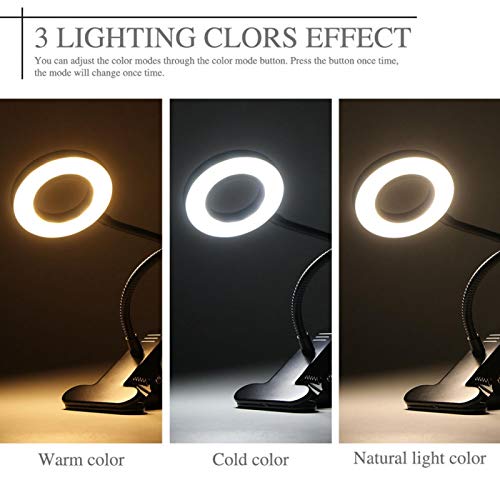 NITRIP Lampada da scrivania con Clip, Luce da Lettura con Clip a LED, Protezione Regolabile per Gli Occhi, Tatuaggio dimmerabile a Pulsante per Ufficio, Salone di Bellezza,(Black)