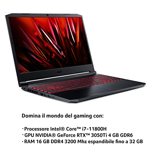 Acer Nitro 5 AN515-57-75RQ Notebook Gaming, Processore Intel Core i7-11800H, Ram 16 GB DDR4, 1024 GB SSD, Display 15.6" FHD IPS 144 Hz LED LCD, NVIDIA GeForce RTX 3050Ti 4 GB, Windows 11 Home