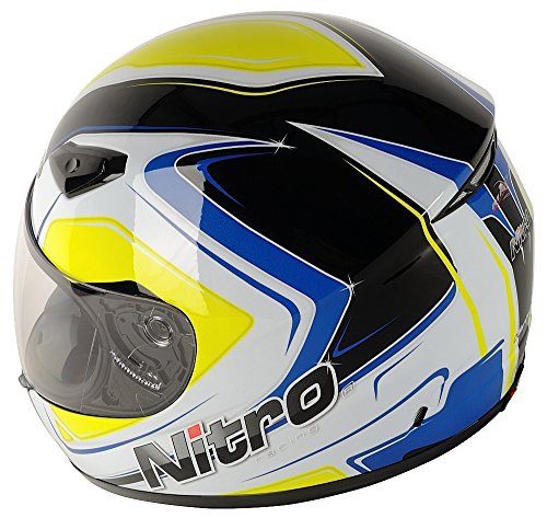 Nitro - Casco Moto Vertice, Bianco/Giallo/Blu, XS