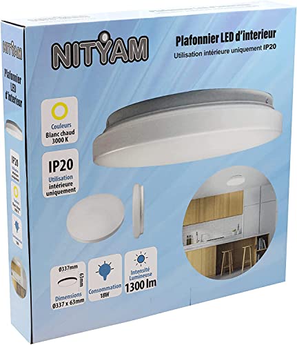 NITYAM Plafoniera LED Indoor 18W, Plafoniera 1300lm - Colore Bianco Caldo (3000K) - IP20 solo per uso interno