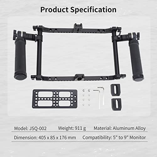 【Alta Compatibilità】 Nitze JSQ-002 director monitor cage è progettata per monitor da 5" a 9", adatta per monitor da 5"/7"/9" sul mercato, come Atomos/ Feelworld/ SmallHD/ Portkeys, ecc. Lega di alluminio materiale per leggerezza e durata.