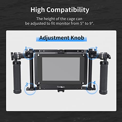 Nitze Director's Monitor Cage per 5"/7"/9" LCD Monitor, Universale Monitor Cage con Side Handle in Gomma Regolabile, Inclusa Una Piastra Formaggio per Montaggio Piastra Batteria V Mount - JSQ-002