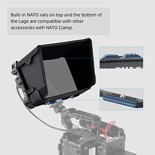 4. La guida NATO integrata nella parte superiore e inferiore della gabbia è compatibile con gli accessori con morsetto NATO. Come il supporto per monitor della serie Nitze N54 per le riprese.