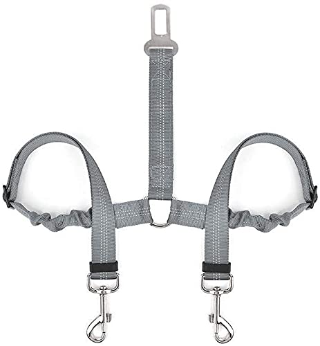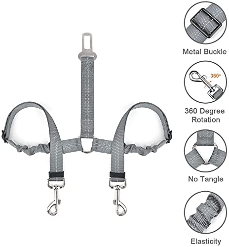 NIUBICLAS - Cintura di sicurezza doppia per cani, doppia cintura di sicurezza per auto, regolabile, doppio accoppiatore per cani con elastico elastico e striscia riflettente