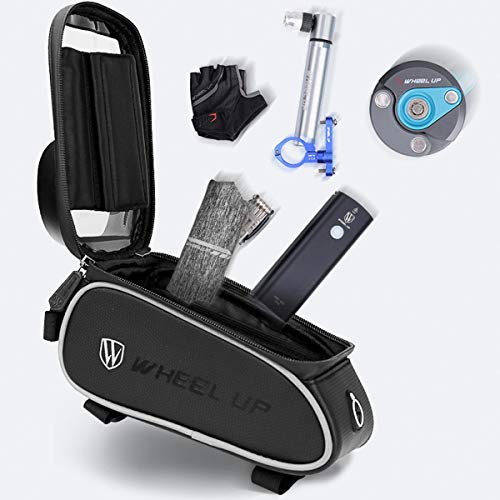 NIUBILITY Borsa per telaio della bici, Bike Frame Bag, Waterproof Bike Pouch Bag, Large Capacity Bike Phone Bag, Top Tube Touchscreen Storage Bag with Headphone Hole for iPhone Samsung Huawei Xiaomi