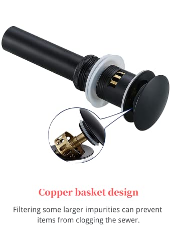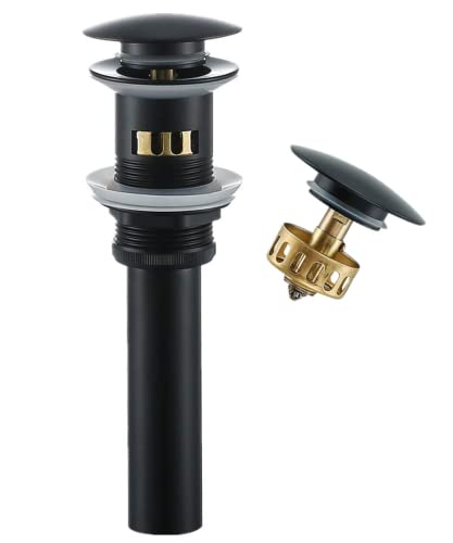 NIUKO Nero Opaco Ottone Piletta di Scarico Utilizzato In Lavabo/Lavandino Bagno,Pop-Up Click Clack con Troppopieno Lavabo Valvola con Cestello Raccoglitore