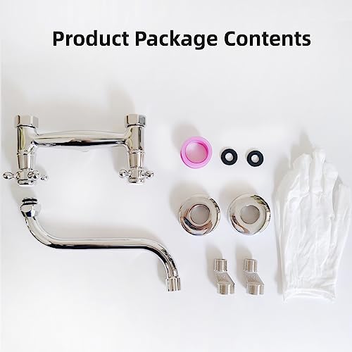 NIUKOMY Rubinetto Cucina a Muro, Miscelatore Tutti di Rame Cromo, Rubinetto Doppia Manopole Leva Caldo e Freddo per Lavello Girevole 360° con Bocca a S per Cucina Bagno Vasca Lavanderia, Argento