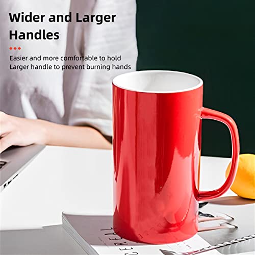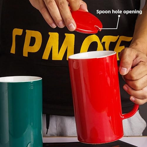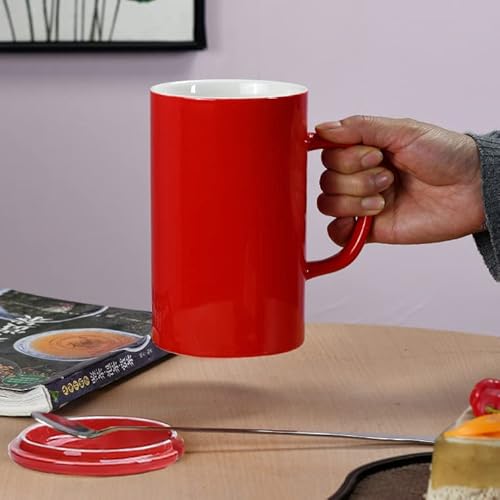 NIUKOMY Tazze Extra Large, Tazza Jumbo 1000ML, Rosso Grandi Tazza da Caffè in Ceramica, Tazza da Tè Grande con Coperchio e Cucchiaio, Grandi Tazze da Latte in Porcellana, Big Mug 33OZ