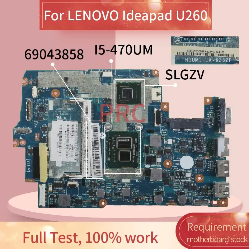 NIUM1 LA-6232P For LENOVO Ideapad U260 I5-470UM Notebook Mainboard SLGZV DDR3 Laptop motherboard
