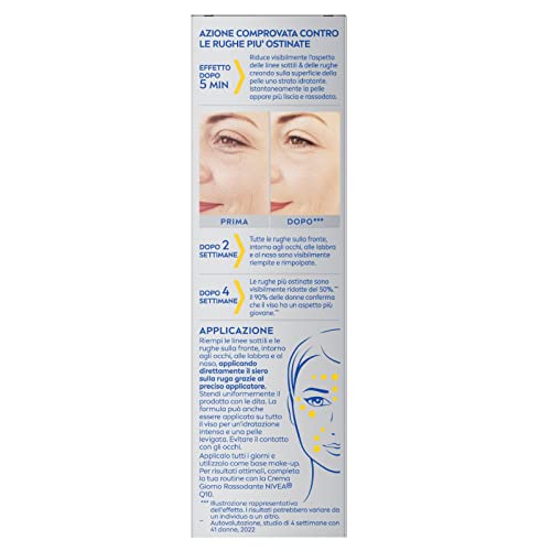 Il kit contiene: 2 flaconi di siero viso Nivea Q10 Anti-Rughe Expert Siero Filler Anti-Rughe Mirato da 15ml ognuno
