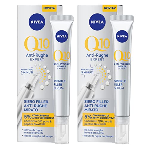 Nivea Q10 Anti-Rughe Siero Filler Viso Expert Mirato Formula con 5% di Attivi Concentrati e Peptidi Bioxifill ad Azione Idratante Levigante Rimpolpante Rassodante Anti Età - 2 Flaconi da 15ml