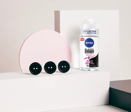 NIVEA Black & White Black Invisible Original Deodorante roll-on in confezione da 6 x 50 ml, Deodorante antitraspirante, Deodorante profumato, regola la traspirazione