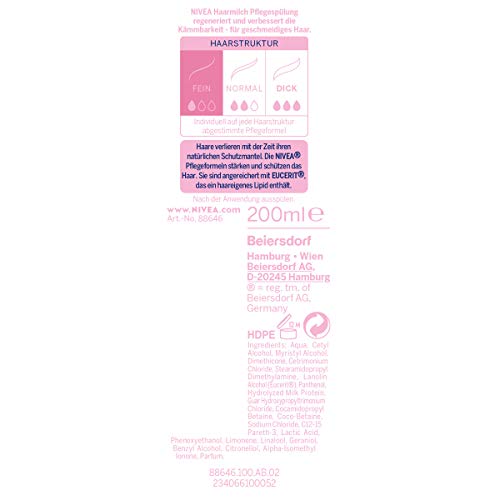 Contenuto della confezione: 1 bottiglia di Nivea capelli latte cura balsamo in testa, 200 ML