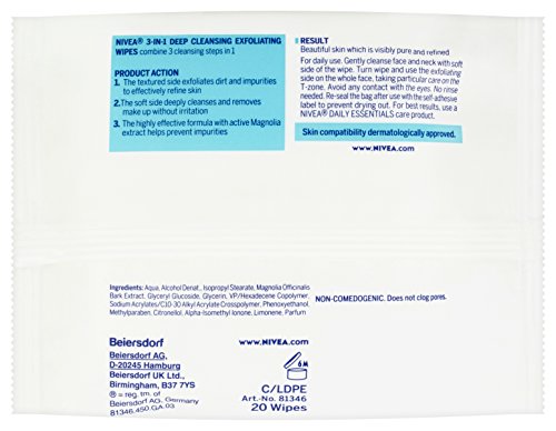 Nivea Daily Essentials 3-in-1 pulizia profonda esfoliante salviette, confezione da 6, totale 120 salviette
