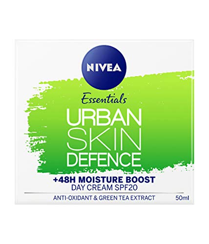 NIVEA Daily Essentials Urban Skin Defence +48H Moisture Boost Day Cream (50ml), crema viso giorno idratante SPF 20, contiene antiossidante e estratto di tè verde bio